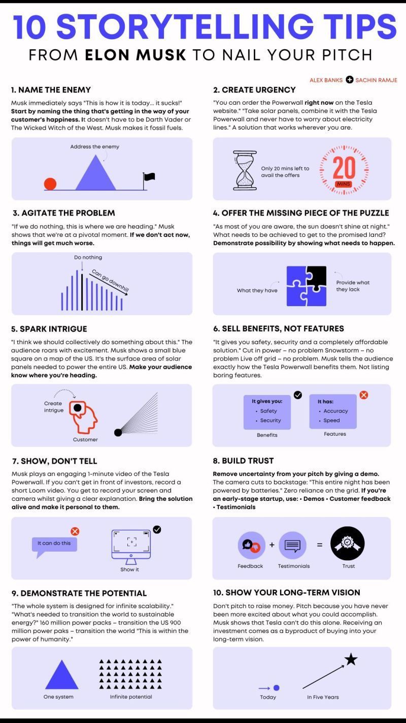 Below, we will further elaborate on the 10 simple storytelling tips from Elon Musk’s presentation to help you fine-tune your pitch: